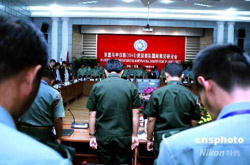 國際救災(zāi)研討會的與會代表,在開幕上集體默哀1分鐘,悼念四川汶川大地震和緬甸熱帶風(fēng)暴中的遇難者。中新社發(fā) 宋吉河 攝