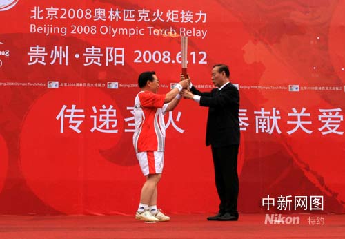 圖:歐陽自遠(yuǎn)從貴州省委書記石宗源手中接過火炬