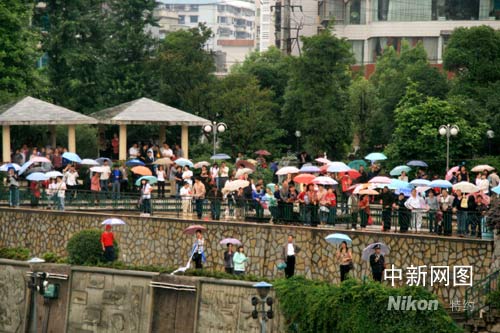 圖:貴陽(yáng)市民冒雨觀看火炬?zhèn)鬟f