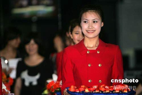 圖:15位準(zhǔn)空姐北京演練奧運(yùn)頒獎儀式 (5)
