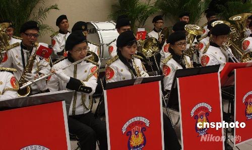 臺灣警政署十三日舉辦慶祝警察節(jié)活動,臺北縣警察樂隊(duì)演奏《感恩的心》,表達(dá)對親人、市民的關(guān)懷。中新社發(fā) 耿軍 攝
