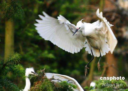 “兩只黃鸝鳴翠柳,一行白鷺上青天”,近日,在福安市灣塢鄉(xiāng)郭厝塘村林間,繁衍棲息著數(shù)千只白鷺、蒼鷺。它們?nèi)粘龆、日落而息,場面蔚為壯觀。成年白鷺或四處覓食、哺育后代,或繞枝翔集、起舞蹁躚,雛鷺們或蜷縮鳥巢、嗷嗷待哺,或羽翼漸豐、展翅欲飛,吸引了眾多觀鳥者和攝影愛好者。中新社發(fā) 王志凌 攝