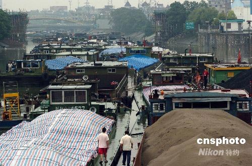 6月18日,300多艘駁殼貨船在京杭大運(yùn)河杭州段滯留。據(jù)了解,從6月17日開始,浙江省迎來了入梅來的第三次強(qiáng)降雨。浙江省防汛指揮部辦已啟動(dòng)防汛Ⅲ級應(yīng)急響應(yīng)。強(qiáng)降雨導(dǎo)致錢塘江流速過快,為確保京杭大運(yùn)河船只行船安全,京杭大運(yùn)河杭州段通往錢塘江的杭州三堡船閘于于當(dāng)日關(guān)閉,300多艘船舶被堵滯留。中新社發(fā) 施健學(xué) 攝
