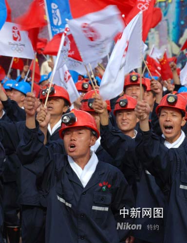 大同礦藏資源豐富,素有“煤都”之稱,是我國(guó)重要的優(yōu)質(zhì)動(dòng)力煤生產(chǎn)基地。圖為煤礦工人來(lái)到火炬?zhèn)鬟f現(xiàn)場(chǎng),為奧運(yùn)加油喝彩。張雷杰 攝
