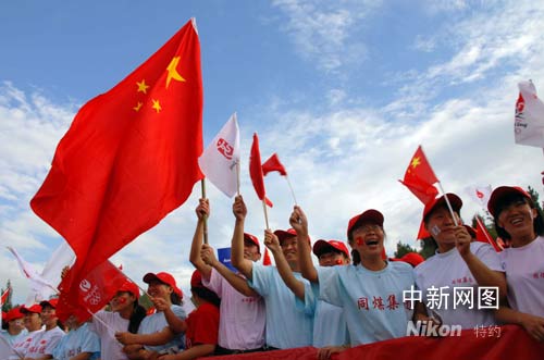 雖然大同站的火炬?zhèn)鬟f路線較短,線路周邊左靠河流右依山頭,無(wú)法容納太多的群眾,但在傳遞線路兩旁還是有為數(shù)不少的民眾,現(xiàn)場(chǎng)為奧運(yùn)加油喝彩。張雷杰攝
