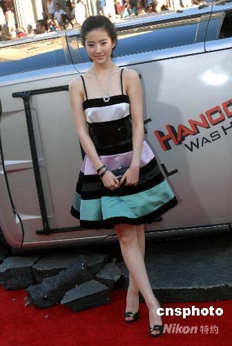 當(dāng)?shù)貢r(shí)間六月三十日晚,索尼電影公司出品的喜劇動(dòng)作片《全民超人》(Hancock)在好萊塢中國(guó)劇場(chǎng)舉行盛大首映式,明星紅地毯走秀規(guī)?氨葕W斯卡頒獎(jiǎng)禮。圖為華人女影星劉亦菲出席首映式。中新社發(fā) 張煒 攝