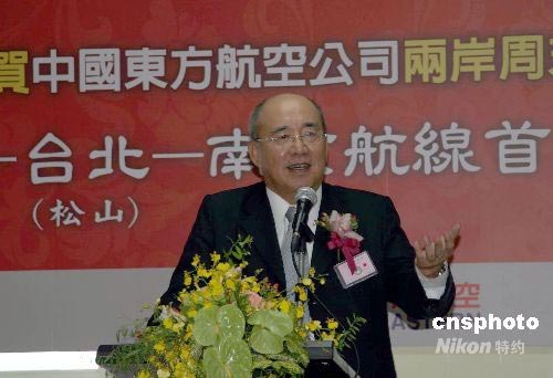 中國國民黨主席吳伯雄七月四日上午親赴臺北松山機(jī)場迎接來自南京的大陸居民赴臺旅游首發(fā)團(tuán)暨兩岸周末包機(jī)。吳伯雄在致詞時呼吁,兩岸周末包機(jī)應(yīng)該盡快實現(xiàn)日;,并截彎取直。中新社發(fā) 徐長安 攝