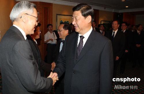7月7日,首次訪問香港的中國國家副主席習近平在海逸酒店會見香港特區(qū)行政、立法、司法機關(guān)負責人。中新社發(fā) 任海霞 攝