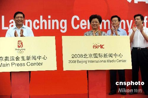 7月8日,北京奧運會主新聞中心、國際廣播中心、國際新聞中心啟用。中共中央政治局委員、北京市委書記、北京奧組委主席劉淇,全國人大常委會副委員長、北京奧組委副主席陳至立等出席啟用儀式。中新社發(fā) 陳文 攝