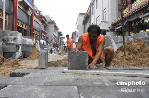前門大柵欄步行街緊鑼密鼓的開始了道路鋪設(shè)作業(yè)。屆時(shí),古老的大柵欄步行街將煥然一新面向海內(nèi)外游客。中新社發(fā) 王宇婷 攝