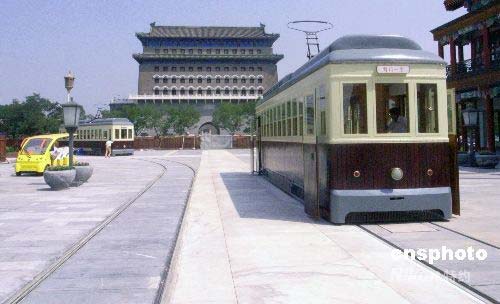 7月21日,當(dāng)當(dāng)車行駛于改造后的北京前門大街。據(jù)有關(guān)方面稱,前門大街有望在奧運(yùn)會(huì)前的8月1日開放。這條街是北京中軸線最重要核心地段,從前門月亮灣南至珠市口全長(zhǎng)840米,2007年5月動(dòng)工,參照上世紀(jì)二三十年代老前門的樣子進(jìn)行。當(dāng)當(dāng)車長(zhǎng)12米,寬2.3米,高3.7米,能夠乘坐84人,單程運(yùn)行需時(shí)約10分鐘,不過(guò)其運(yùn)行能源不再是靠來(lái)自頂上的天線,而是本身攜帶的新能源。中新社發(fā)