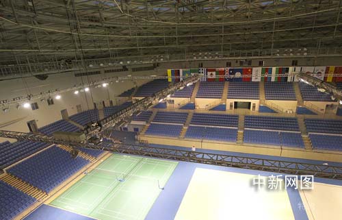 圖:影視紅星韓雪奧運(yùn)羽毛球館激情揮拍