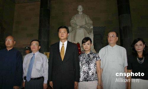 臺(tái)北縣長(zhǎng)周錫瑋率臺(tái)北縣南京參訪團(tuán)一行十人拜謁南京中山陵,在孫中山像前合影。中新社發(fā) 朱曉穎 攝