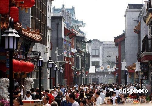 7月30日,在北京奧運即將開幕之際,有著近500年歷史的大柵欄商業(yè)街完成近年來最大規(guī)模的改造,重新正式開街迎接四方來客。 中新社發(fā) 王東明 攝