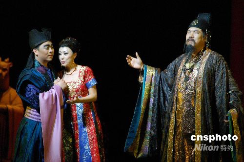 7月30日晚,由享譽國際的中國作曲家譚盾創(chuàng)作的歌劇《茶——心靈的明鏡》首度登上北京的國家大劇院。該劇通過追述中國茶文化的起源與陸羽的《茶經(jīng)》,引出唐朝公主與日本王子圣響的一段愛情,其音樂具有中國式的深遠(yuǎn)和淡定,同時運用諸多自然聲響,融入水琴、云鑼、瓷器、陶鼓、紙、水等打擊樂器,與整部歌劇表現(xiàn)的茶經(jīng)、禪道在形式及內(nèi)容上渾然一體。圖為公主與日本王子的愛情受到皇帝恩準(zhǔn)。中新社發(fā) 潘旭臨 攝
