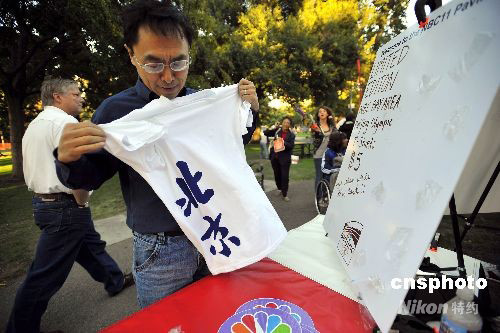 圖:美國華人搶購限量發(fā)售的奧運T恤衫