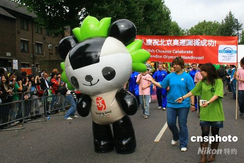 當(dāng)?shù)貢r(shí)間25日,歐洲最大規(guī)模的街頭文化藝術(shù)節(jié)——一年一度的英國諾丁山狂歡節(jié)在倫敦舉行。今年的狂歡節(jié)上,當(dāng)?shù)厝A人團(tuán)體的盛裝隊(duì)伍打出“英國華人慶祝北京奧運(yùn)圓滿成功”的橫幅,在福娃的帶領(lǐng)下走在狂歡節(jié)所有隊(duì)伍的最前面。