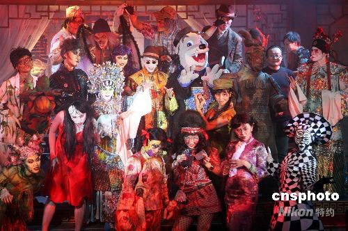 八月二十八日,香港海洋公園主席盛智文粉墨登場(chǎng),率領(lǐng)一群打扮怪異的“嘩鬼”向前來(lái)采訪的傳媒“張牙舞爪”。當(dāng)日,海洋公園推介將在十月份舉辦的萬(wàn)圣節(jié)“哈啰喂”活動(dòng),出動(dòng)大批猛鬼演繹八大主題和恐怖大餐。中新社發(fā) 洪少葵 攝