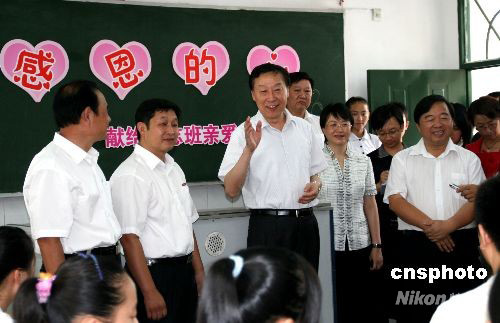 9月8日,中國第24個(gè)教師節(jié)前夕,江蘇省長羅志軍親切慰問揚(yáng)州的廣大教師和教育工作者。中新社發(fā) 崔佳明 攝