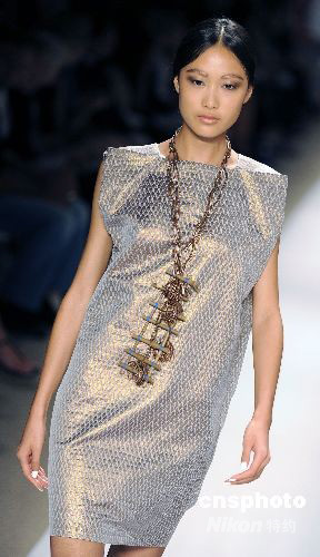 當?shù)貢r間9月8日晚,在美國紐約市布萊恩特公園舉行的“2009紐約時裝周”上,來自中國上海的名模秦舒培參加了時裝表演。她于2007年進軍紐約時裝周,已參加了多場時裝發(fā)布,成為國際天橋上令人矚目的新星。中新社發(fā) 曹堂 攝