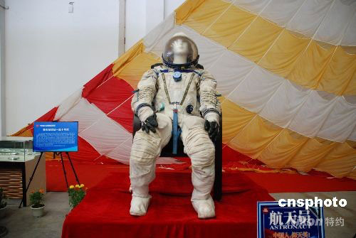 圖為價值五百萬元的宇航服實物展品首次在中國國內(nèi)公眾面前亮相。