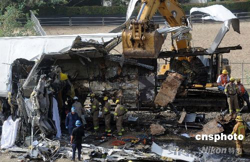 圖:美國洛杉磯發(fā)生嚴(yán)重的列車相撞事故(2)