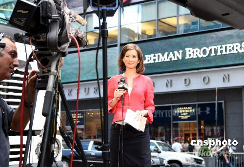 發(fā)表評論    9月15日,美國有著158年歷史的第4大投資銀行雷曼兄弟公司向法院申請破產(chǎn)保護(hù),當(dāng)日紐約各大媒體的數(shù)十輛轉(zhuǎn)播車移師到雷曼兄弟公司總部外,全天候報道這一震驚華爾街的經(jīng)濟(jì)事件。中新社發(fā) 鄧悅 攝