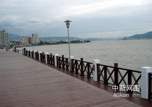 九月十五日,記者參觀臺(tái)北淡水老街。站在臺(tái)北淡水漁人碼頭的棧道上遠(yuǎn)眺,可看見對(duì)面的觀音山和出?诒M頭的臺(tái)灣海峽。作者:曾福志