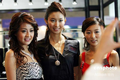 九月十八日,應(yīng)屆香港小姐冠軍張舒雅、亞軍陳倩揚(yáng)及季軍馬賽應(yīng)邀到“香港珠寶鐘表展”上,為香港珠寶制造業(yè)廠商主辦的“2008首飾設(shè)計(jì)比賽”擔(dān)任評判。中新社發(fā) 洪少葵 攝