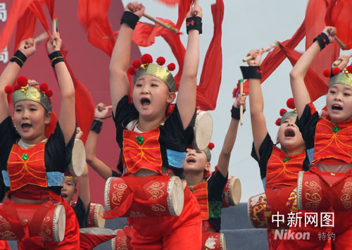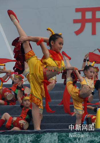 開(kāi)幕式上做精彩表演的小演員們。