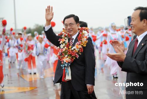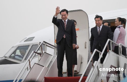 9月22日上午,以中共中央政治局常委、中央紀(jì)委書記賀國強為團(tuán)長的中央代表團(tuán),乘專機抵達(dá)銀川,參加寧夏回族自治區(qū)成立50周年慶;顒印T阢y川河?xùn)|機場,受到寧夏回族自治區(qū)官員和民眾的熱烈歡迎。中新社發(fā) 廖攀 攝