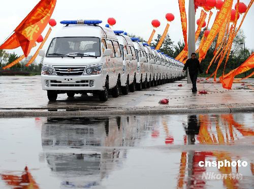 9月22日,在寧夏回族自治區(qū)成立50周年之際,中央政府向?qū)幭幕刈遄灾螀^(qū)贈(zèng)送143輛救護(hù)車。這些救護(hù)車將用于寧夏基層醫(yī)療工作。中新社發(fā) 廖攀 攝