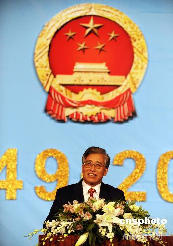 當(dāng)?shù)貢r(shí)間9月23日晚,中國(guó)駐洛杉磯總領(lǐng)事館在洛杉磯環(huán)球影城舉行中華人民共和國(guó)成立五十九周年國(guó)慶招待會(huì),來(lái)自當(dāng)?shù)卣虒W(xué)界名流、華人華僑代表等數(shù)百人參加了招待會(huì)。中國(guó)駐洛杉磯總領(lǐng)事張?jiān)瓢l(fā)表演講,感謝各界人士為促進(jìn)中美關(guān)系的發(fā)展做出的貢獻(xiàn)。中新社發(fā) 張煒 攝