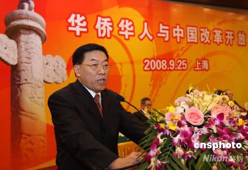 9月25日,中國僑聯(lián)主席林軍在上海舉行的“華僑華人與中國改革開放紀念大會”上演講,盛贊華僑華人在中國改革開放中作出了獨特的貢獻。中新社發(fā) 史利 攝