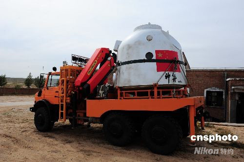圖為搜救演練應(yīng)用的模擬返回艙。中新社發(fā) 周敬波 攝