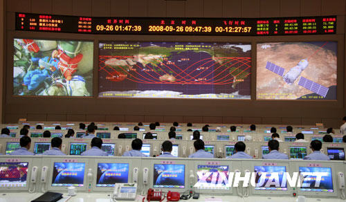 9月26日,科研人員在北京航天飛行控制中心對神舟七號進行飛行控制。新華社記者 查春明 攝
