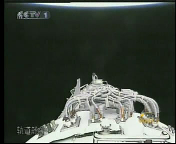 9月26日晚至27日凌晨,神七航天員在艙內(nèi)進行各種活動。