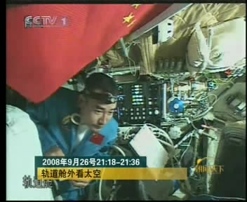 9月26日晚至27日凌晨,神七航天員在艙內(nèi)進行各種活動。