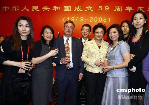 9月29日,國(guó)務(wù)院僑辦和中國(guó)海外交流協(xié)會(huì)舉行招待午宴,歡迎來京參加國(guó)慶59周年活動(dòng)的華人華僑代表,國(guó)務(wù)院僑辦主任李海峰致祝酒辭。中新社發(fā) 杜洋 攝
