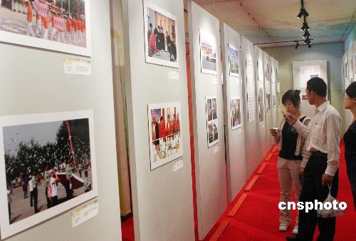 圖為大紅門(mén)發(fā)展成就圖片展吸引參觀者。中新社發(fā) 錢(qián)興強(qiáng) 攝