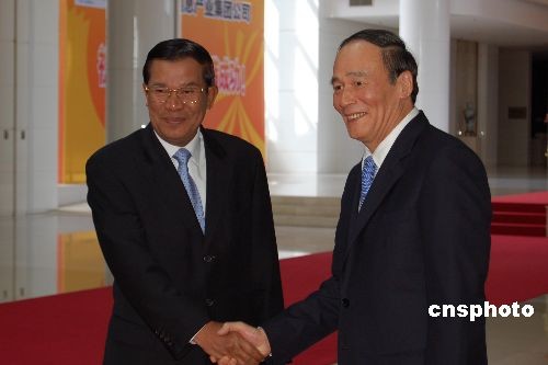 中國國務(wù)院副總理王岐山在廣西南寧會(huì)見了柬埔寨首相洪森一行。