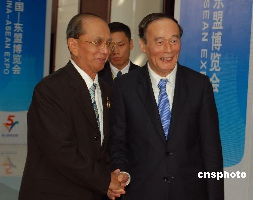 中國國務(wù)院副總理王岐山在廣西南寧會(huì)見了緬甸總理登盛一行。
