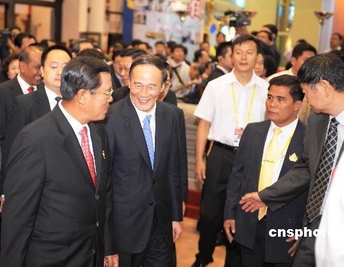 王歧山洪森共同巡視中國(guó)—東盟博覽會(huì)展館