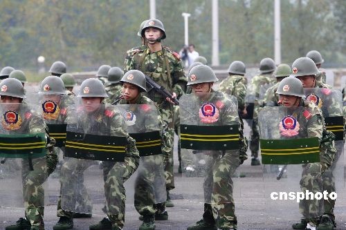 10月21日上午,遂寧市公安特警在進(jìn)行反劫持人質(zhì)演習(xí)。當(dāng)天,四川遂寧市公安大練兵暨反恐演習(xí)舉行。中新社發(fā) 鐘 敏 攝