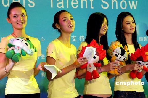 10月23日晚,正在北京舉行的2008新絲路世界模特大賽的各國參賽選手進(jìn)行才藝展示,有風(fēng)情、民族舞蹈、歌曲、樂器以及民族服飾等豐富多采的表演。圖為參加過奧運(yùn)會的禮儀引導(dǎo)員共同演唱歌曲《北京歡迎你》。中新社發(fā) 錢興強(qiáng) 攝
