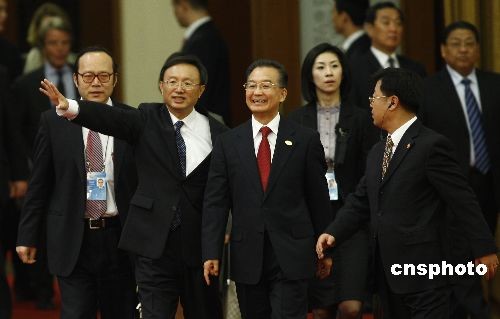 中國(guó)國(guó)務(wù)院總理溫家寶出席并主持會(huì)議。中新社發(fā) 盛佳鵬 攝