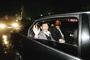19時(shí)10分許,在學(xué)生們歡呼聲中,袁隆平坐一輛奧迪車駛?cè)胄@。袁隆平搖下車窗,舉右手向校友表示感謝。