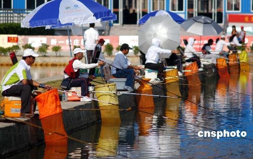 十月二十八日,在福建南安八月湖舉行的第六屆全國(guó)農(nóng)運(yùn)會(huì)釣魚比賽正有條不紊進(jìn)行著。共有來自全國(guó)各地的二十五支代表隊(duì)隊(duì)員分別參加了手桿釣、拋桿釣等分項(xiàng)賽,其中臺(tái)灣隊(duì)員參加了加竿手釣鯽魚尾數(shù)、手桿釣混合魚重量、拋桿釣混合魚單尾重量等比賽,比賽成績(jī)將于三十號(hào)揭曉。中新社發(fā) 傅丹丹 攝
