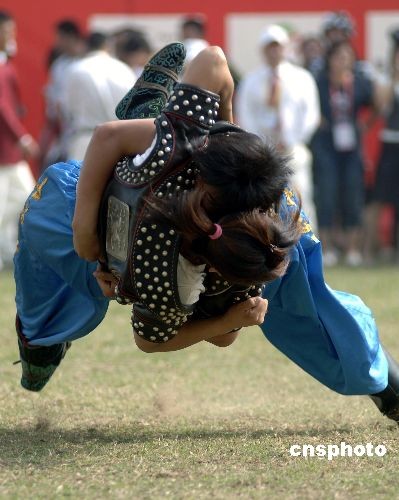 10月31日,第六屆全國農(nóng)運會“搏克”表演賽在福建泉州僑鄉(xiāng)體育場舉行。搏克是蒙古語,意為摔跤,同時含有結(jié)實、團(tuán)結(jié)、持久之意。搏克是目前世界上流行的各種摔跤運動中完整保持自己古老民族特色的一項直接對抗性競技體育運動。