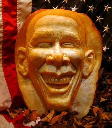 英國(guó)兩名男子日前用南瓜雕刻出了一系列世界上著名人物的頭像,其中包括美國(guó)民主黨總統(tǒng)候選人奧巴馬、《星球大戰(zhàn)》中的沖鋒隊(duì)員等,這些頭像栩栩如生。